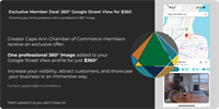 Enhance your business’s online presence with a professional 360° image added to your Google Street View profile. Chamber members can take advantage of this special offer—one immersive 360° photo for just $360. Give customers an inside look and stand out on Google Maps! Contact: jaysalois@vrticalmedia.io