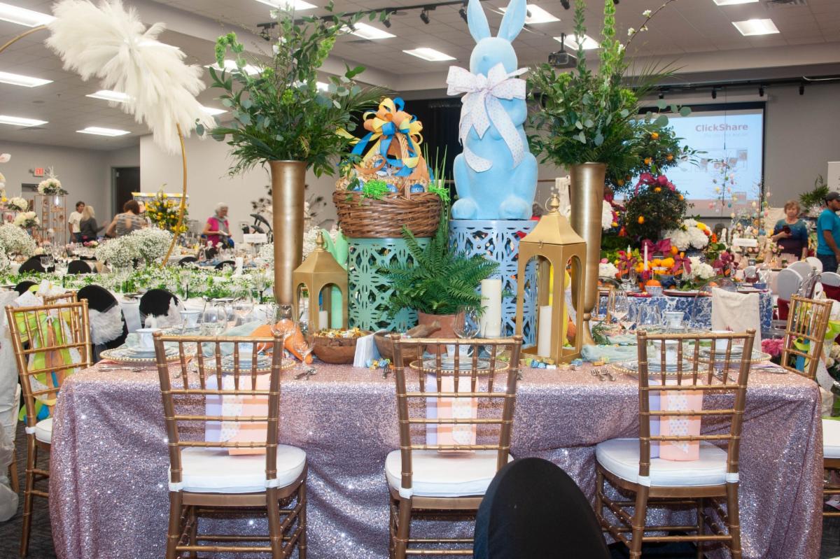 A huge thank you goes out to Kevin Venable, KV Designs, and Vicki Novosad-Walker from Bowdazzle for their incredible design talents and for inviting me to co-host an AMOCO Federal Credit Union table with Tracy McMeekin, Hares Our Springtime Hideaway. Together, Kevin and Vicky crafted a whimsical spring ambiance that enchanted guests and added to the overall charm of this spectacular event.