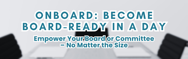 Ready to lead with clarity and confidence? Join us for OnBoard: Board Ready in a Day—a dynamic, in-person workshop designed to turn good board members into great ones.