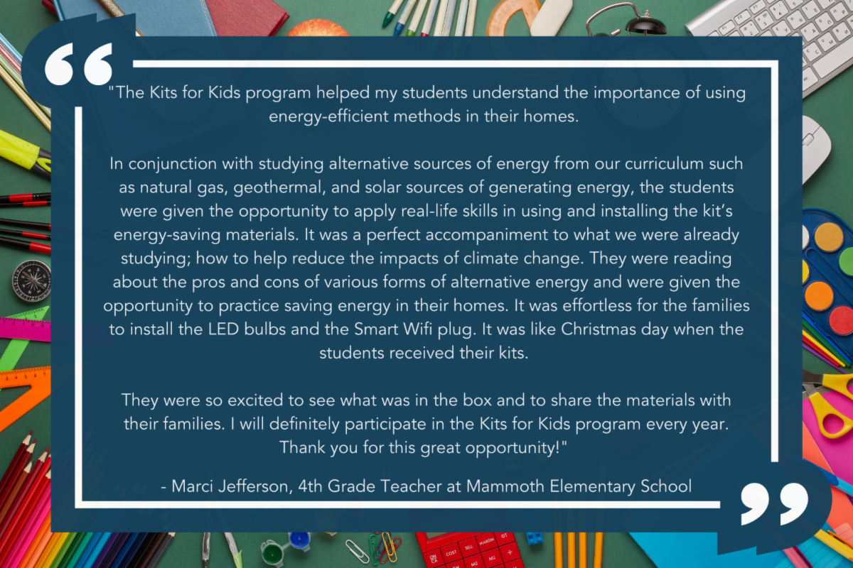 The 2022 Kits for Kids program has driven meaningful impact across the region. Hear what that success looks like in the classroom from Marci Jefferson, an educator with Mammoth Elementary School below.