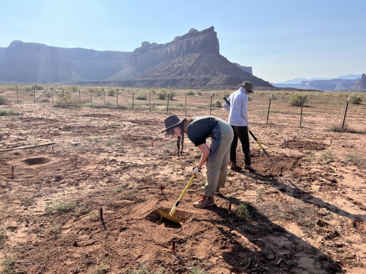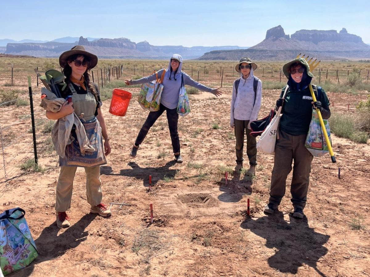 RestoreNet is a co-produced research network that systematically tests dryland restoration treatments across environmental gradients in the Southwest. There are currently 23 RestoreNet sites spread across five states and seven ecoregions in the Southwest. The U.S. Geological Survey and university partners received a Western Sustainable Agriculture and Education Award to incorporate live topsoil inoculation, seedballs, soil pits, and targeted livestock treatments into RestoreNet seeding treatments. These treatments are designed to improve seeding success, soil health, and soil microbial communities in degraded soils. In the summer of 2024, we installed these treatments at RestoreNet sites on working rangelands with private, non-governmental, university, and federal partners. We will monitor these sites for two years to assess treatment effectiveness and restoration outcomes. To learn more about RestoreNet please visit our webpage, which includes links to publications and a research brief on what we’ve learned from RestoreNet experiments in the past 5 years.