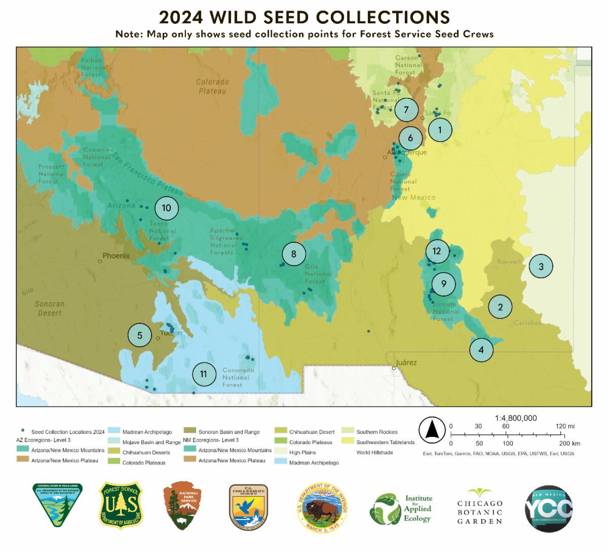 Thank you to the following land managers for permitting seed collection for SWSP crews this year: Bureau of Land Management (New Mexico and Arizona), United States Forest Service Region 3, New Mexico State Land Office, Carlsbad Caverns National Park, Saguaro National Park, Organ Pipe National Monument, Ironwood National Monument, Galisteo Basin Preserve, Santa Fe County Open Space, City of Santa Fe, New Mexico State Parks, and the Bureau of Reclamation.