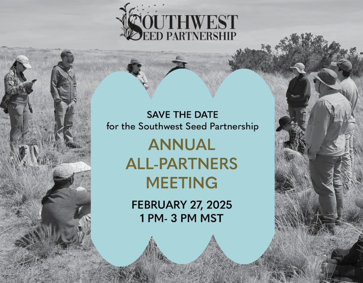 The SWSP is working to improve the supply of ecologically-appropriate native seeds for restoration projects in New Mexico and Arizona. The SWSP, coordinated by the Institute for Applied Ecology (IAE) Southwest Office, is represented by diverse public and private partners- from land managers and natural resource scientists to on-the-ground restoration practitioners and native seed farmers and nurseries. Read the updates below to see how our partnership is making strides toward our goal of expanding the native seed industry in the Southwest!