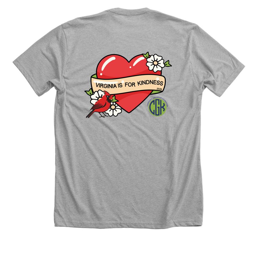 Virginia's 7th Annual Kindness Week will be February 9-13, 2026. Each year there is a t-shirt fundraiser where one Virginia based organization is selected to support. This year all proceeds from the sale go to the CKG Foundation!