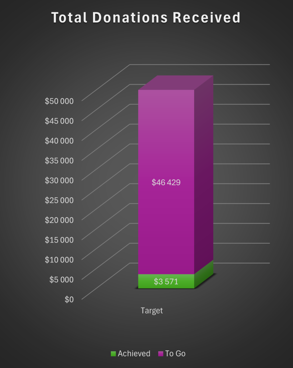 As of February 17, a total of $4,427, which is 8.85% of the GOAL, has come in from our precious friends ! Will you please add to this what the Lord places on your heart?