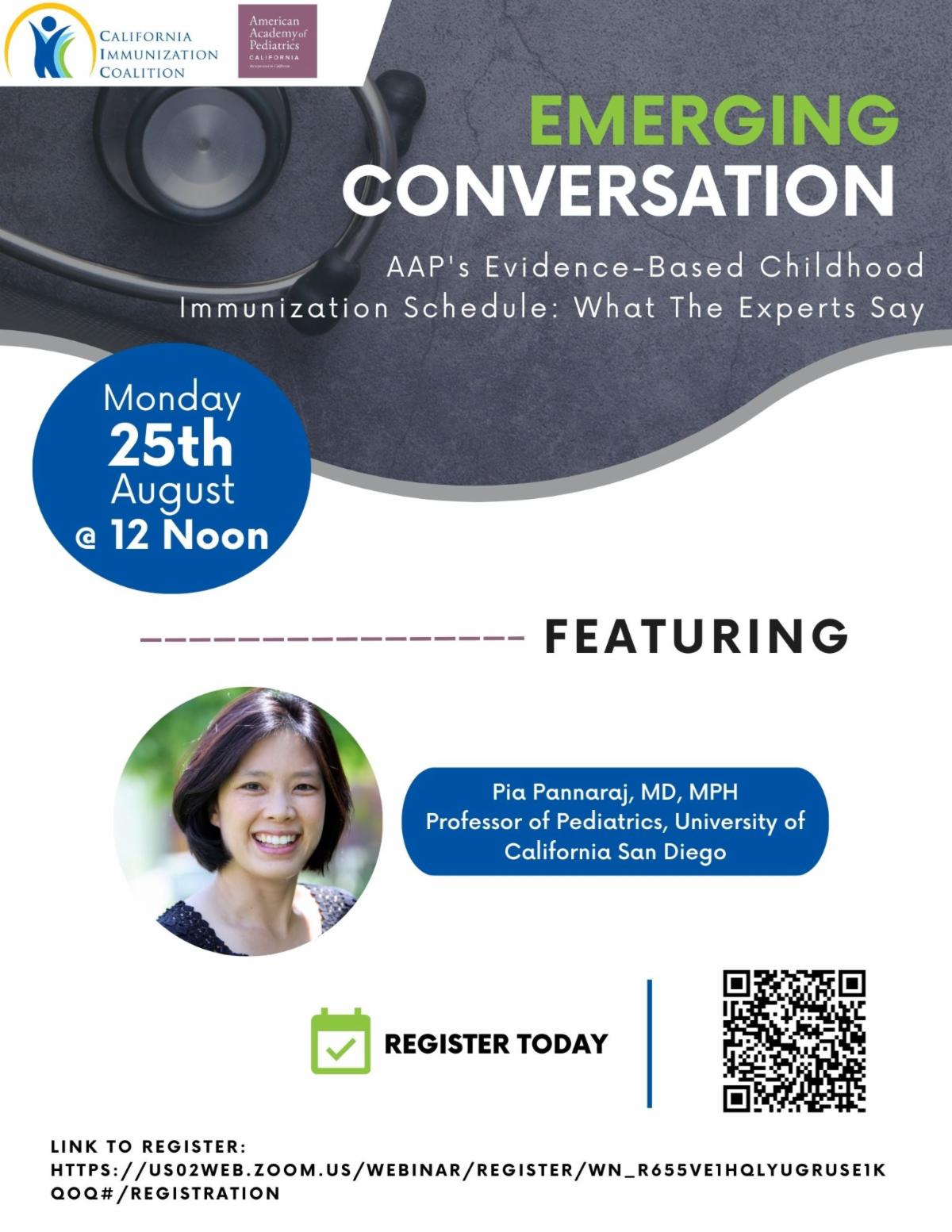 The California Immunization Coalition, in partnership with the American Academy of Pediatrics (AAP) - California Chapters, invites you to attend a webinar to discuss AAP's childhood immunization schedule released on August 19, 2025 at noon PT.