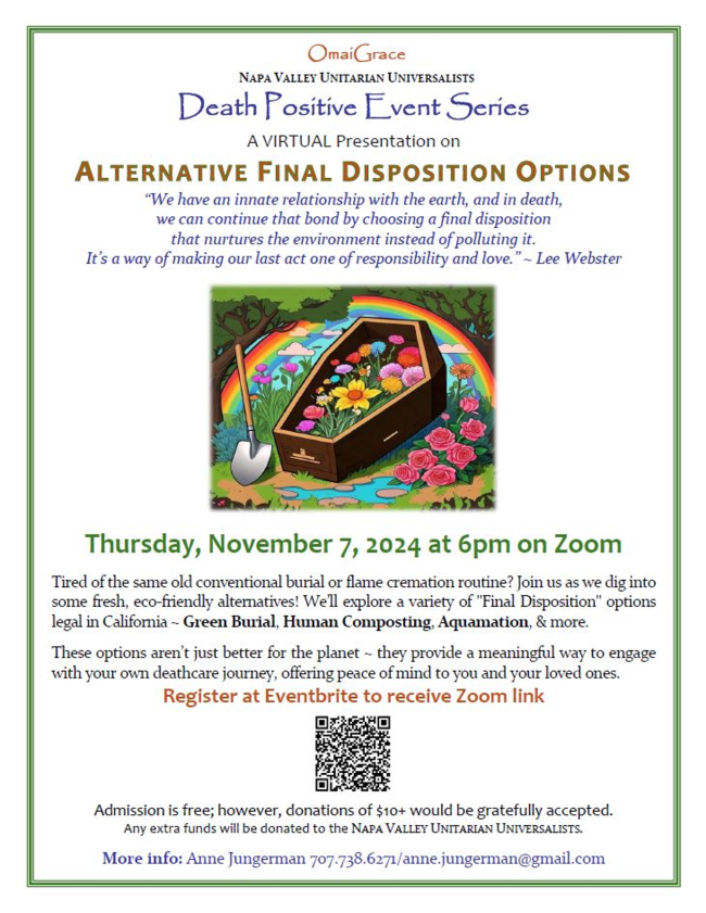 DEATH POSITIVE EVENT SERIES - ZOOM PRESENTATION ON ALTERNATIVE "FINAL DISPOSITION" OPTIONS