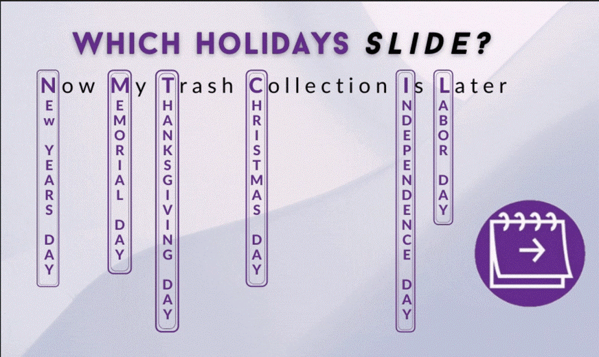 There will be REGULAR CURBSIDE COLLECTIONS on Monday, February 15th and the rest of the week.