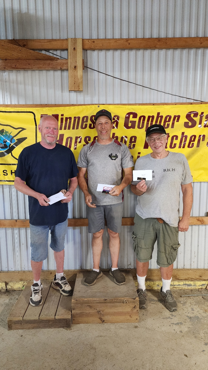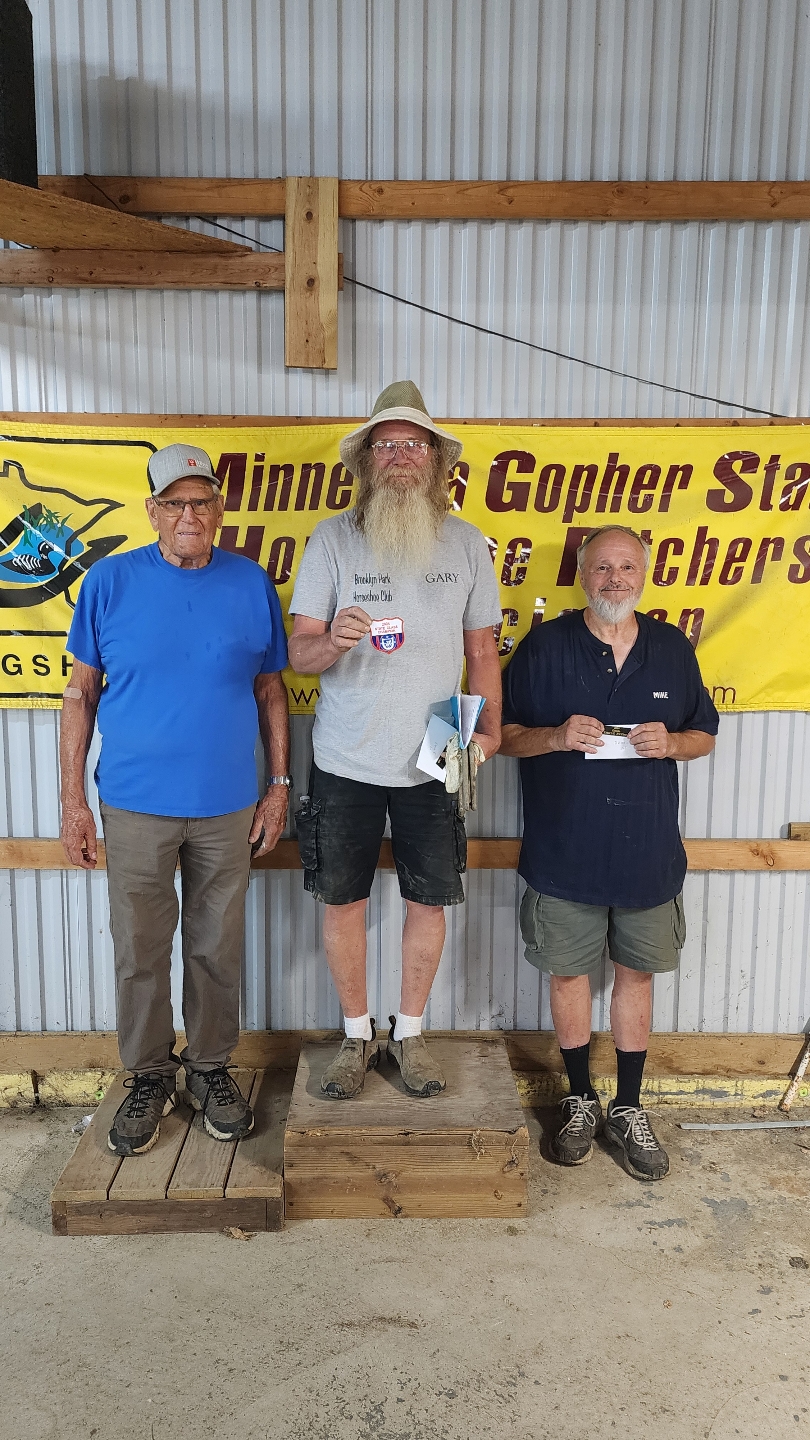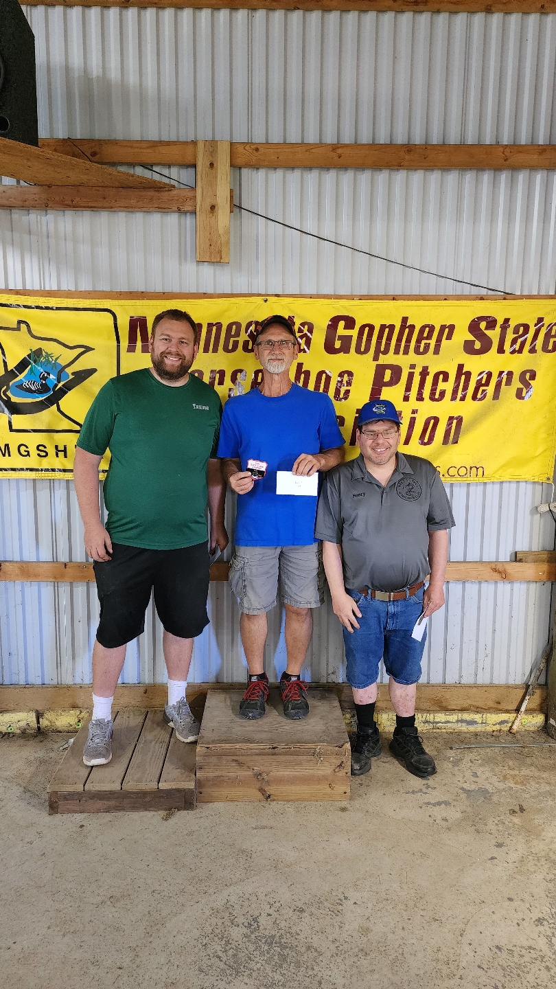 A small, but mighty class as Lu Cave, Marlys Timm and I took to the courts, with our designated pacer, Tristian Dehkes. (Thank you Tristian!) We played a double Round Robin and the competition was fierce. Playing against these two women who have been so influential in Minnesota Horseshoes was an honor. They have been mentors and roll models to so many young women.