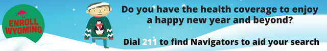 Enroll Wyoming does not discriminate on the basis of race, national origin, marital status, sex, gender, sexual orientation, gender expression, age, religion, political belief, disability, or veteran status. This correspondence is supported by the Centers for Medicare and Medicaid Services (CMS) of the U.S. Department of Health and Human Services (HHS) as part of a financial assistance award totaling $3.95 million with 100% funded by CMS/HHS. The contents are those of the author(s) and do not necessarily represent the official view of, nor an endorsement by CMS/HHS or the U.S. government.