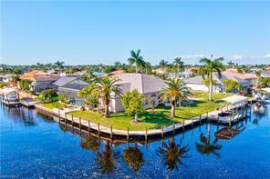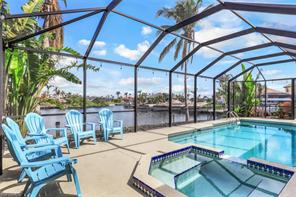 IMMACULATE SOUTHERN EXPOSURE GULF ACCESS POOL PROPERTY. From the moment you walk through the front door into this gulf access home your view is drawn to the beautiful lanai, pool area with spa, spectacular views of the 300-foot-wide intersecting canal with dock and lift, ready for your boat. With less than a mile away from restaurants, shops, parks, banks, and pharmacies.