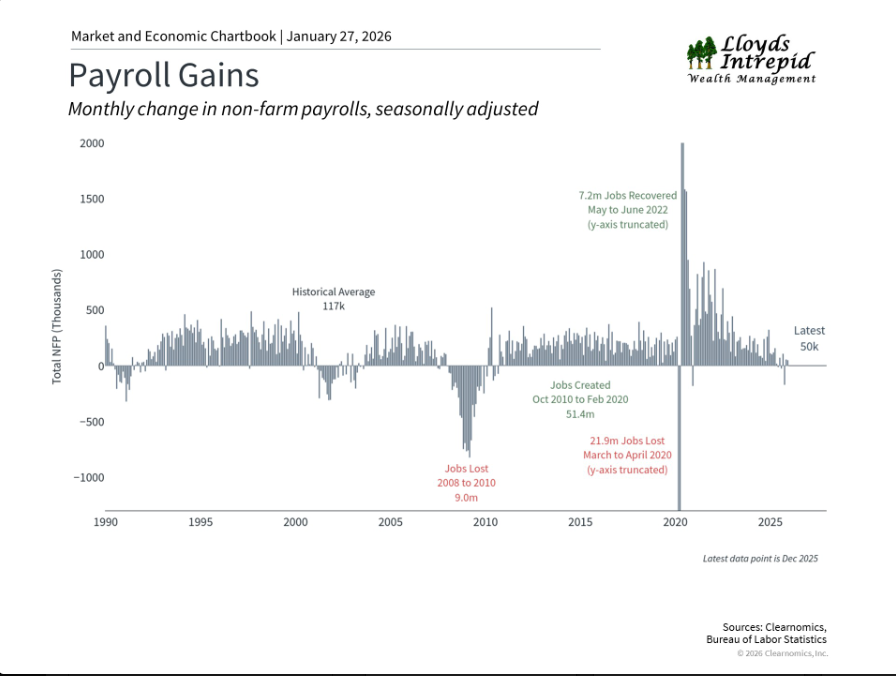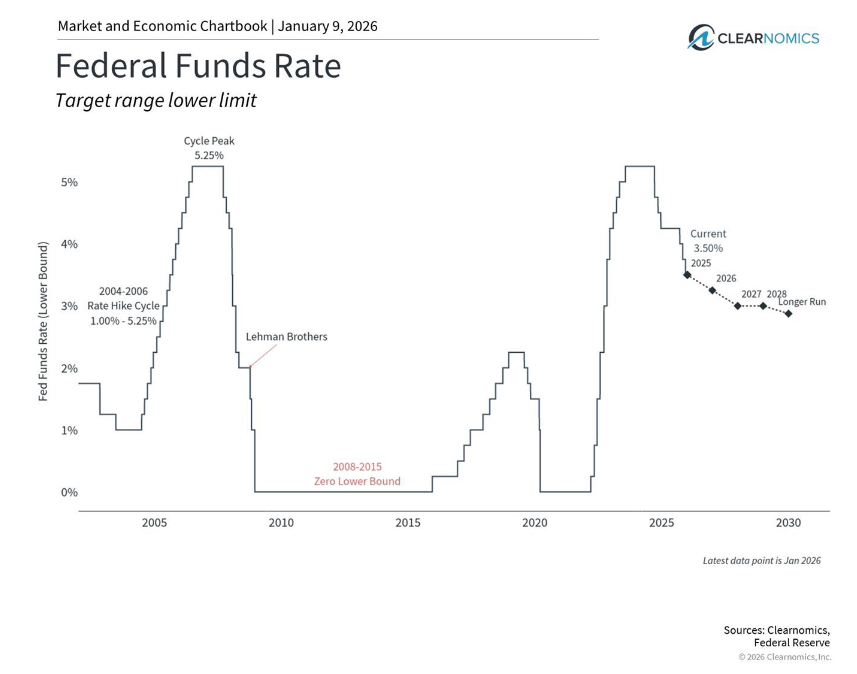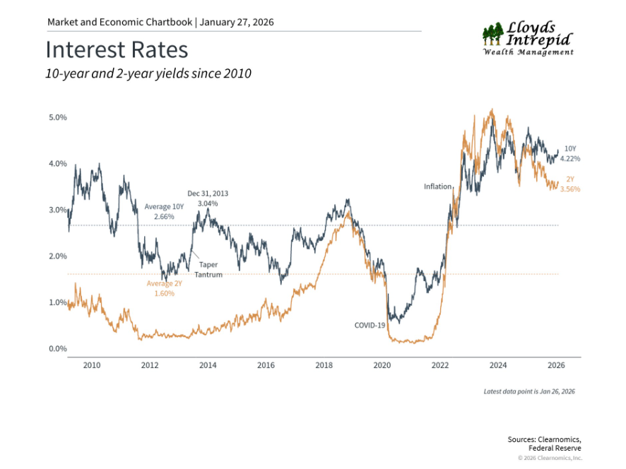 - Inflation remains muted but the Fed elected to keep interest rates stable at the meeting in late January. Their Fed Funds rate remains at a target range of 3.5% - 3.75%.