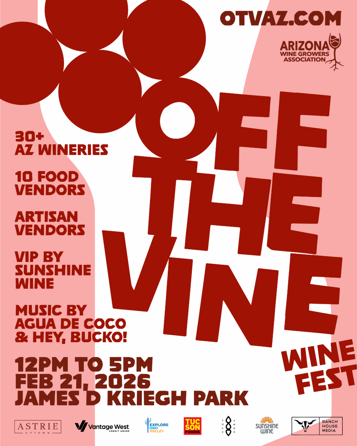 ------The 11th Annual Off the Vine Wine Festival is back in Oro Valley this year and will be held at James D. Kriegh Park on Saturday, February 21. The festival brings together Arizona’s premier wineries, local food vendors, and live music for a full day celebrating the state’s vibrant wine culture.