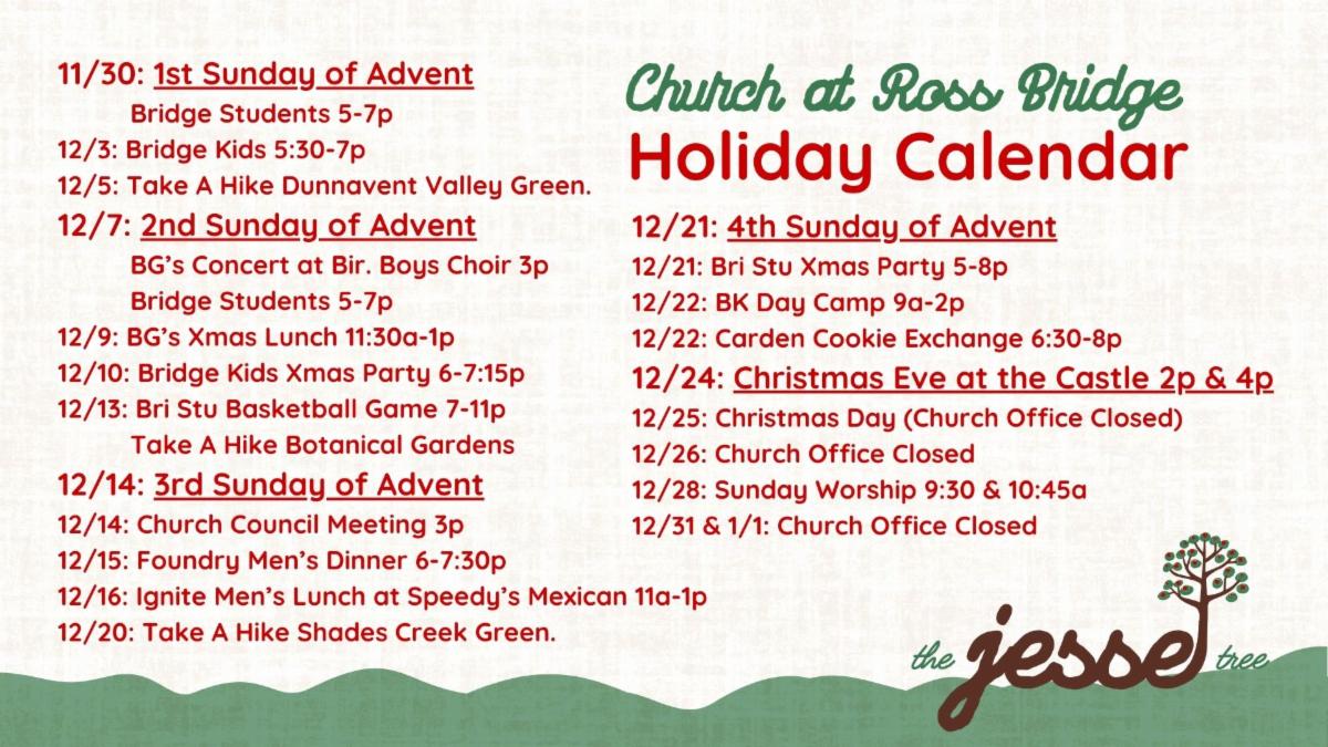 Join us for "The Jesse Tree", our Advent worship series. Salvation history reaches its culmination in Jesus, but it was God’s plan from the beginning and woven into each chapter of Israel’s story. Each Sunday leading to Christmas Eve, we will explore a different character or story in the Old Testament that reveals our need for the unique solution Jesus provides - and the practical implications for our lives today.
