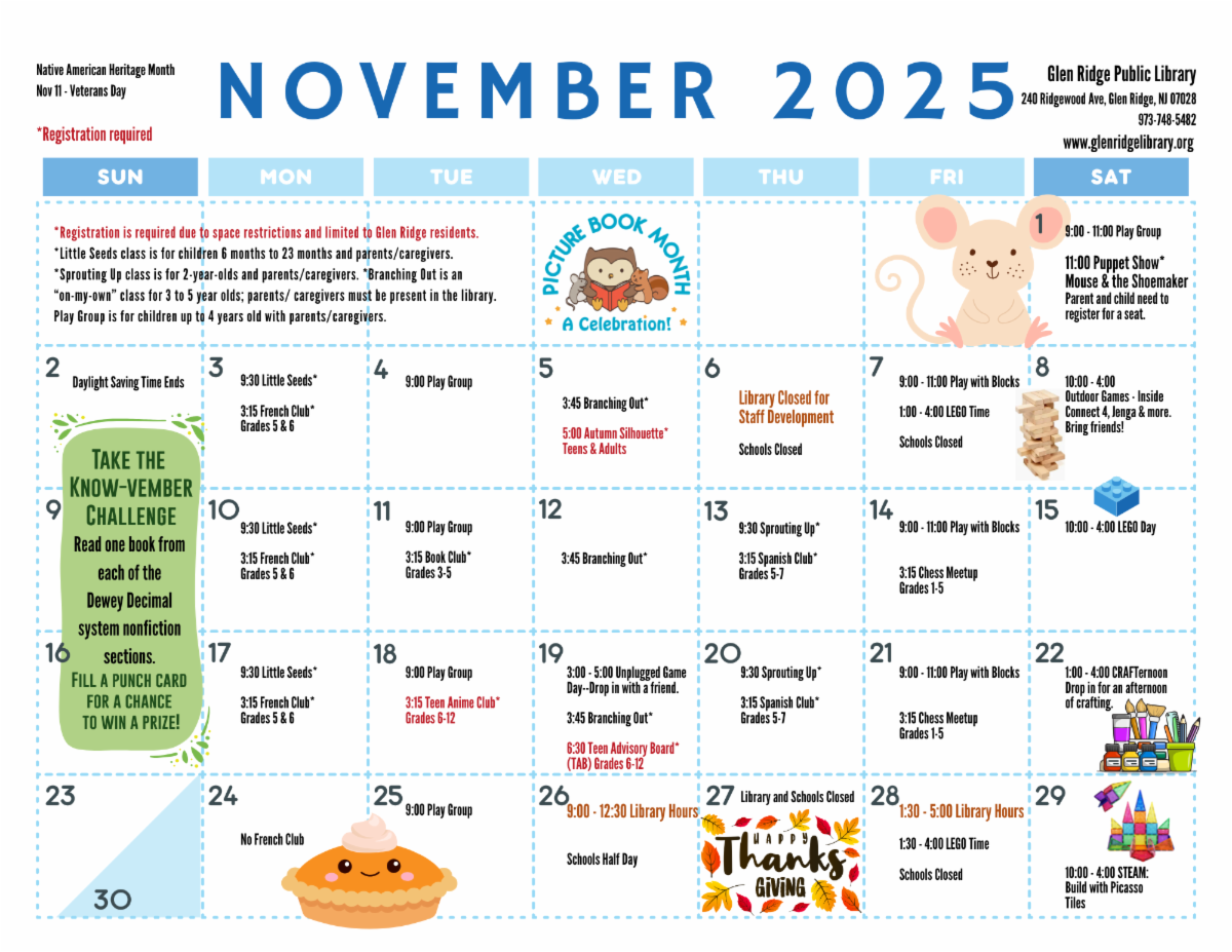 Get ready for the Glen Ridge Library's KNOW-vember Challenge starting this Saturday, November 1st -