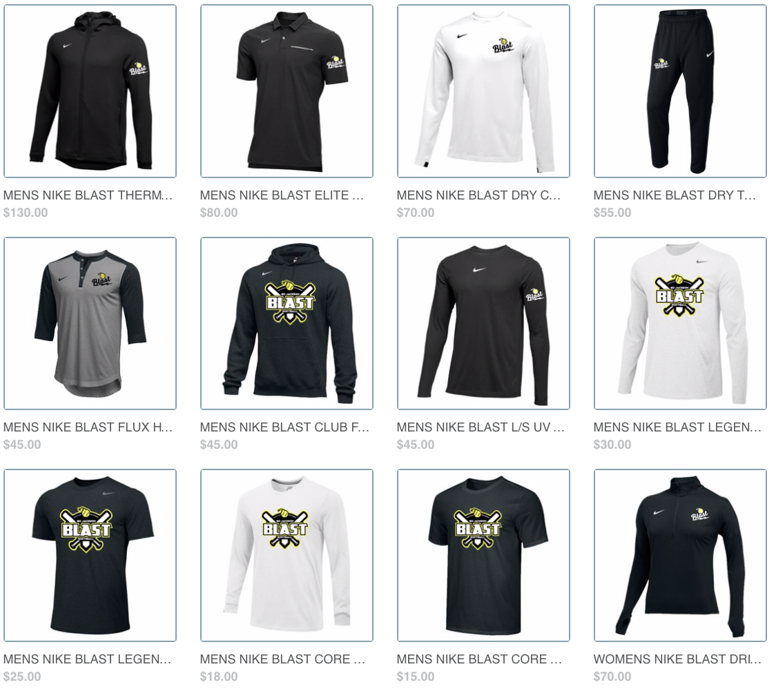 Custom order spirit wear for the Bo Jackson Elite Baseball and Softball Travel Teams