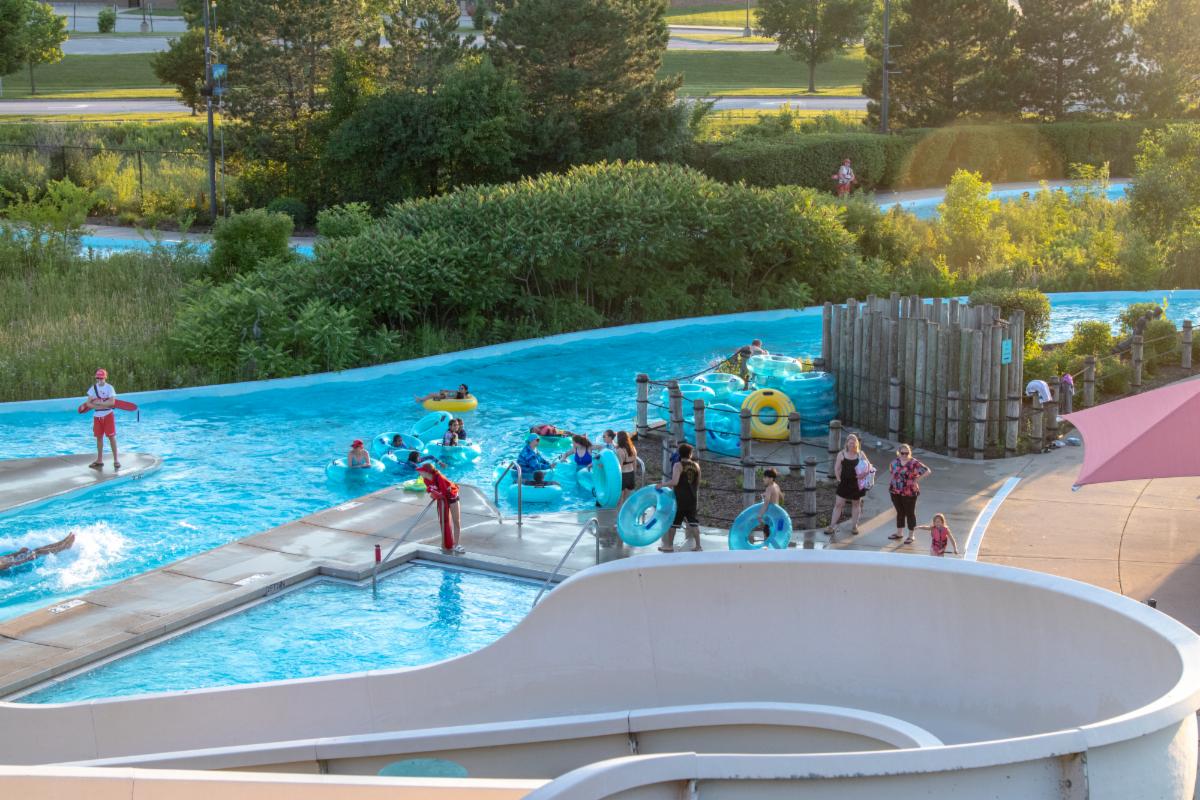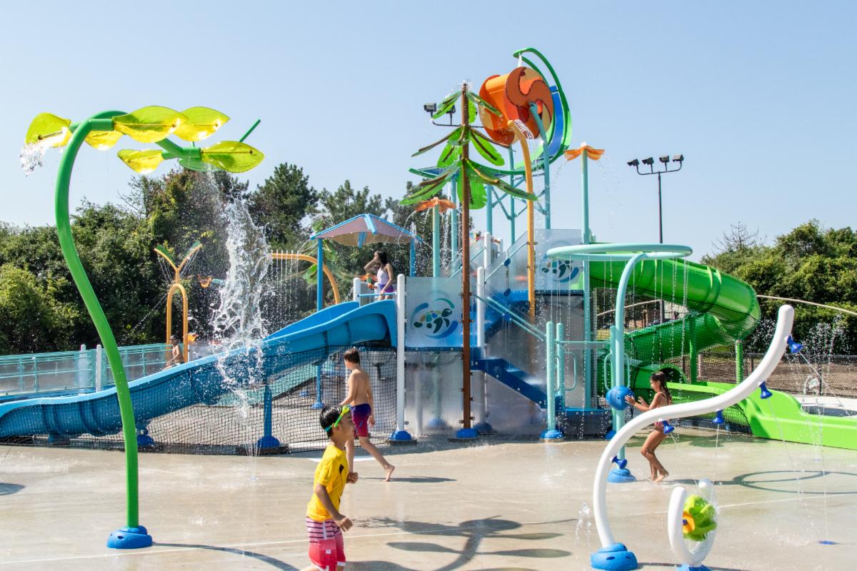 Zero-Depth Leisure Pool with 6 Lap Lanes • Zero-Depth Pool with Water Falls, Sprays, and Jets • 700-Foot Lazy River • Body Slide, Inner Tube Slide, and Enclosed Body Slide • Sand Play Area • Shade Umbrellas • Deck Chairs • Locker Rooms • Concessions