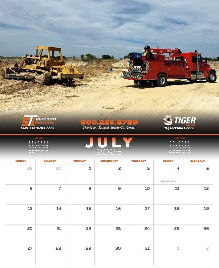Send us YOUR scenic working shots by August 15th to be considered for our 2026 calendar. Email horizontal/landscape pics to marketing@ servicetrucks.com.
