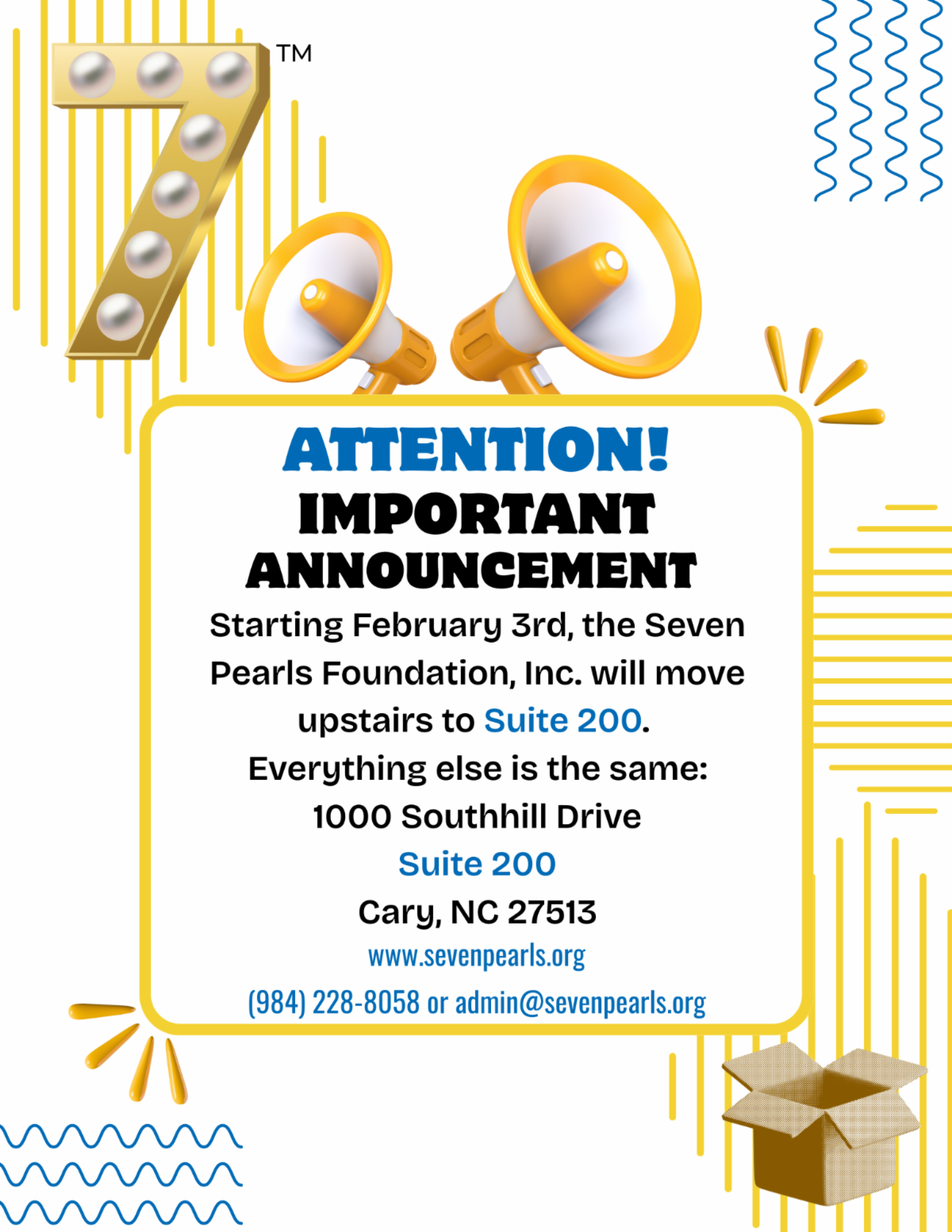 Let us unite in our mission to empower one another and engage with the Seven Pearls Foundation, fostering transformative change within our communities and nurturing the next generation of leaders who will carry this legacy forward.