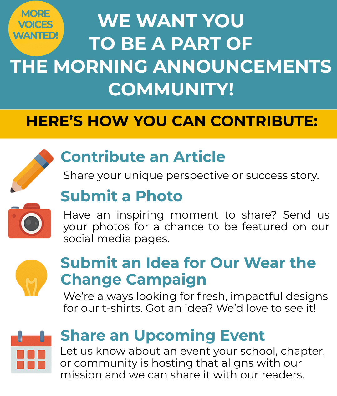 We want YOU to be a part of the Morning Announcements community!