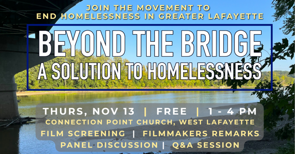 | | The Greater Lafayette Homelessness Steering Committee invites you to Beyond the Bridge: Film & Community Conversation for Change — Thursday, November 13, from 1–4 p.m. at Connection Point Church, West Lafayette. Join us to begin shaping a long-term, coordinated effort to end homelessness in Greater Lafayette. This FREE event—held during National Homelessness Awareness Month—features a screening of Beyond the Bridge: A Solution to Homelessness, remarks from the filmmakers, a local panel discussion, and opportunities for dialogue and action. Your attendance is vital. This is an incredible professional development and learning opportunity. RSVP today at LUMserve.org/beyond-the-bridge. | |