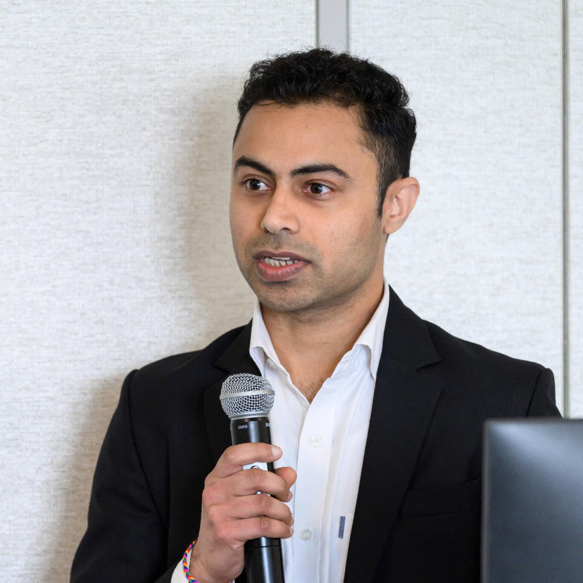These lecturers were joined by three Spaulding speakers: Hye Chang Rhim, MD, year-four resident; Andrew Bolender, clinical research coordinator in the Napadow Lab, and Kandarp Dave, PhD (pictured), postdoctoral research fellow. These early-career experts contributed talks on the association of football exposure with arthritis in professional players, the effect of cognitive behavioral therapy on symptom catastrophizing in gastroparesis (delayed stomach emptying), and the mechanisms behind how exercise-primed extracellular vesicles might improve knee osteoarthritis, respectively.
