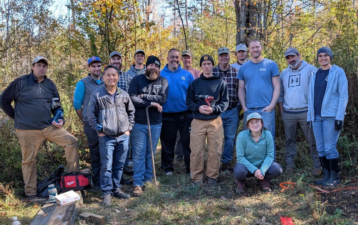 | Last month, 13 Hypertherm employees joined our Stewardship team for a volunteer workday at Smith Pond Shaker Forest Conservation Area. Together, they carried materials, cut boards, and assembled more than 20 brand-new bog bridges, ensuring feet stay dry and happy and sensitive wet areas aren’t trampled. Several of the volunteers installed the original bridges in 2018, and a grant from the Hypertherm HOPE Foundation funded the supplies. | | |