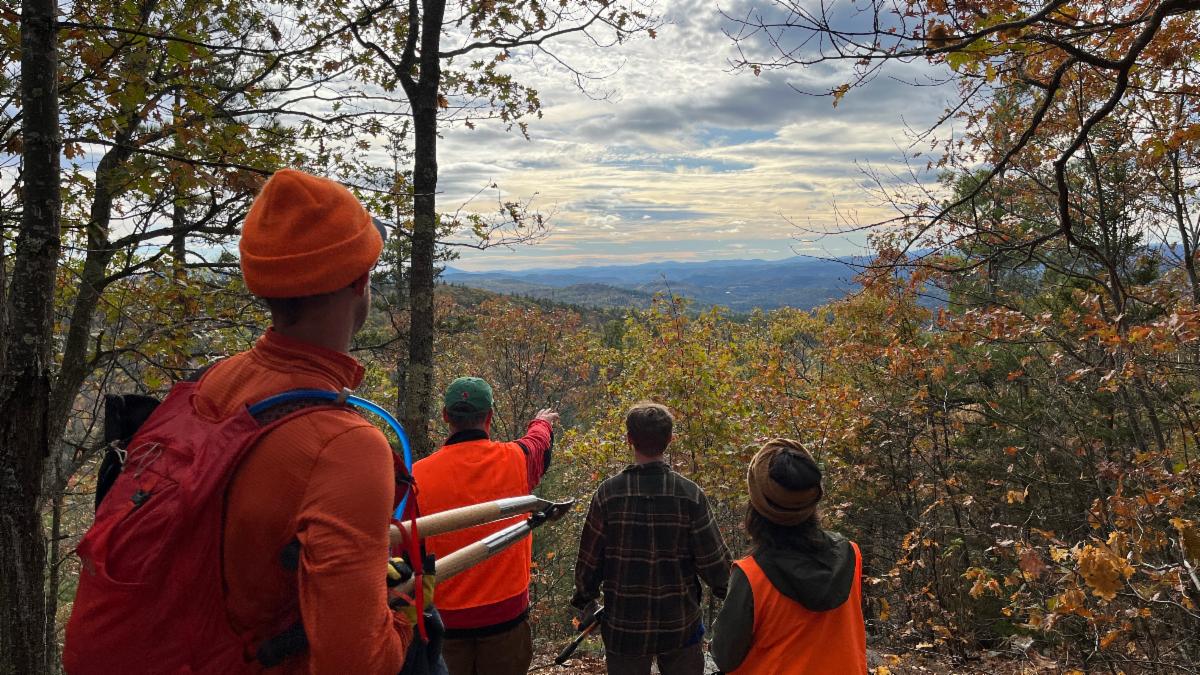 In mid-October, a crew of staff and volunteers went out to remove some blowdowns across the trail at Stonehouse Mountain and to clear the south-facing lookout. The highlight of the outing was running into a solo hiker and her dog on their way down as the group was heading up to start their workday. Here's what she had to say when they greeted her: