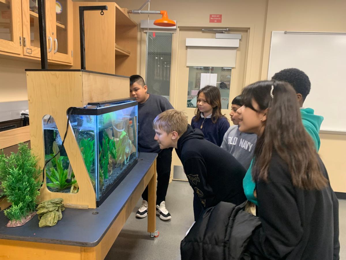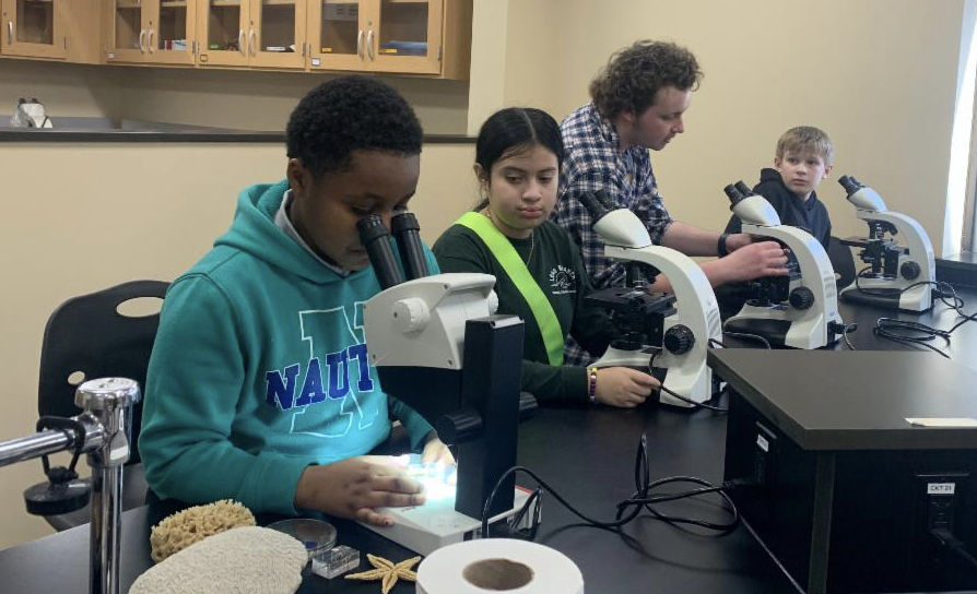 In the Biology Lab, where Bio Lab students helped them explore with microscopes and furry tarantulas...