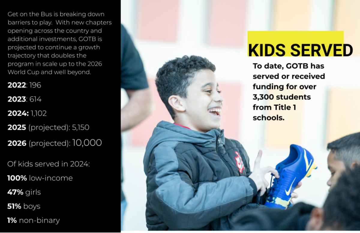 As we have grown, a new motto has arisen, "this is not a moment, it's a movement." Our goal is to reach 10,000 kids by WC 2026, but we are learning the "bus" doesn't stop there. We want you to come along for the ride.