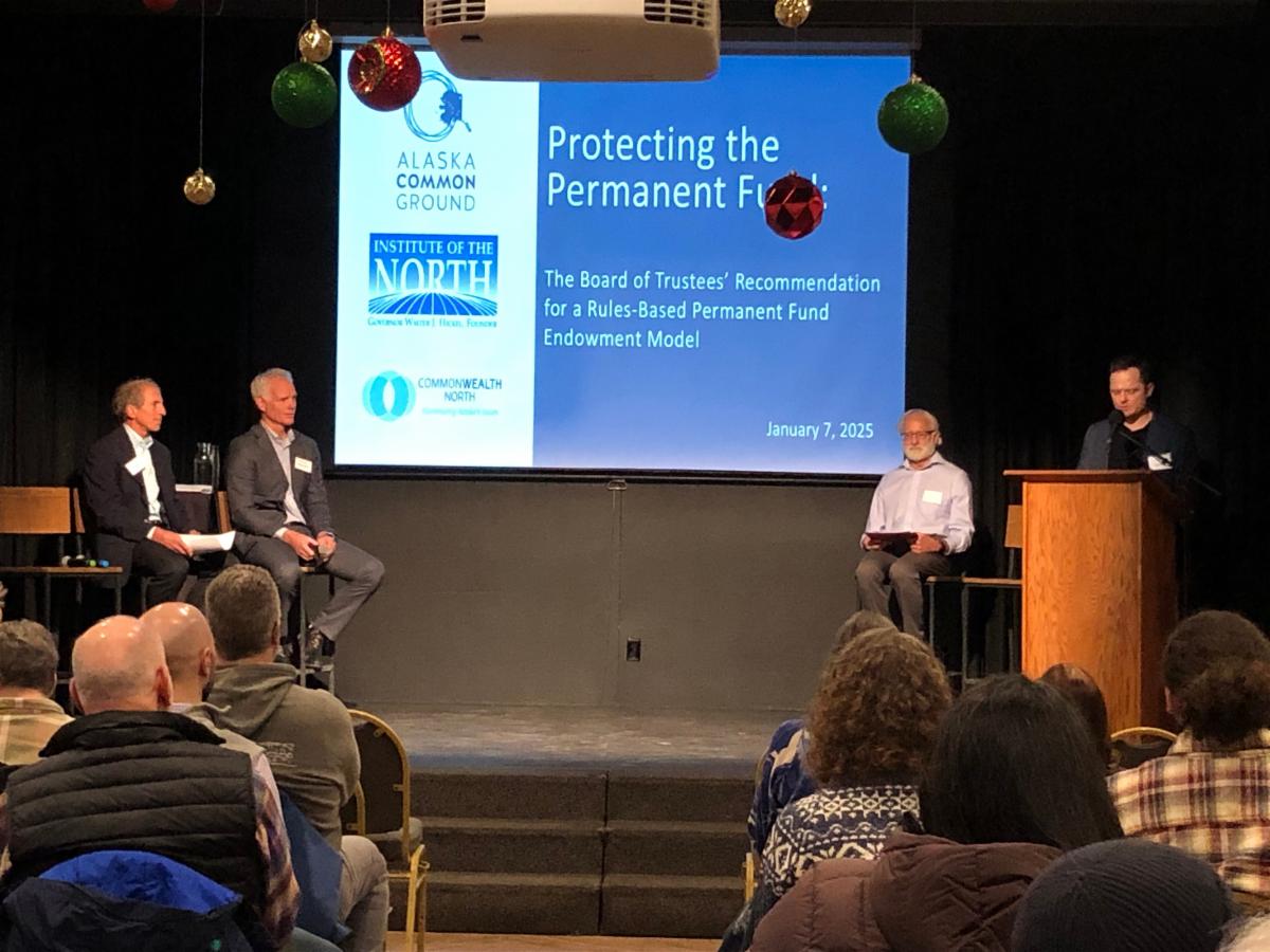 On January 7, 2025, Alaska Common Ground with co-hosts Institute of the North and Commonwealth North held a free in-person and live streamed event at 49th State Brewing in Anchorage to highlight and discuss a proposed change to management of the Alaska Permanent Fund (APF). Our guest panelists included: Deven Mitchell, CEO and Executive Director of the APF Corporation; Steve Rieger, Former State Senator and former APF Corporation Trustee; Penny Gage, Alaskan Advocate; and Senator Cathy Giessel, State Senate Majority Leader.
