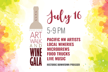 Saturday, July 16th 5pm-9pm. Historic Downtown Prosser. Sip award-winning wine and enjoy a stroll on Art Walk promenade featuring the creative works of Pacific Northwest artisans exhibiting a variety of mediums from fine art, glass, pottery, jewelry, fiber, and wood to recycled whimsy. 21 + Event.