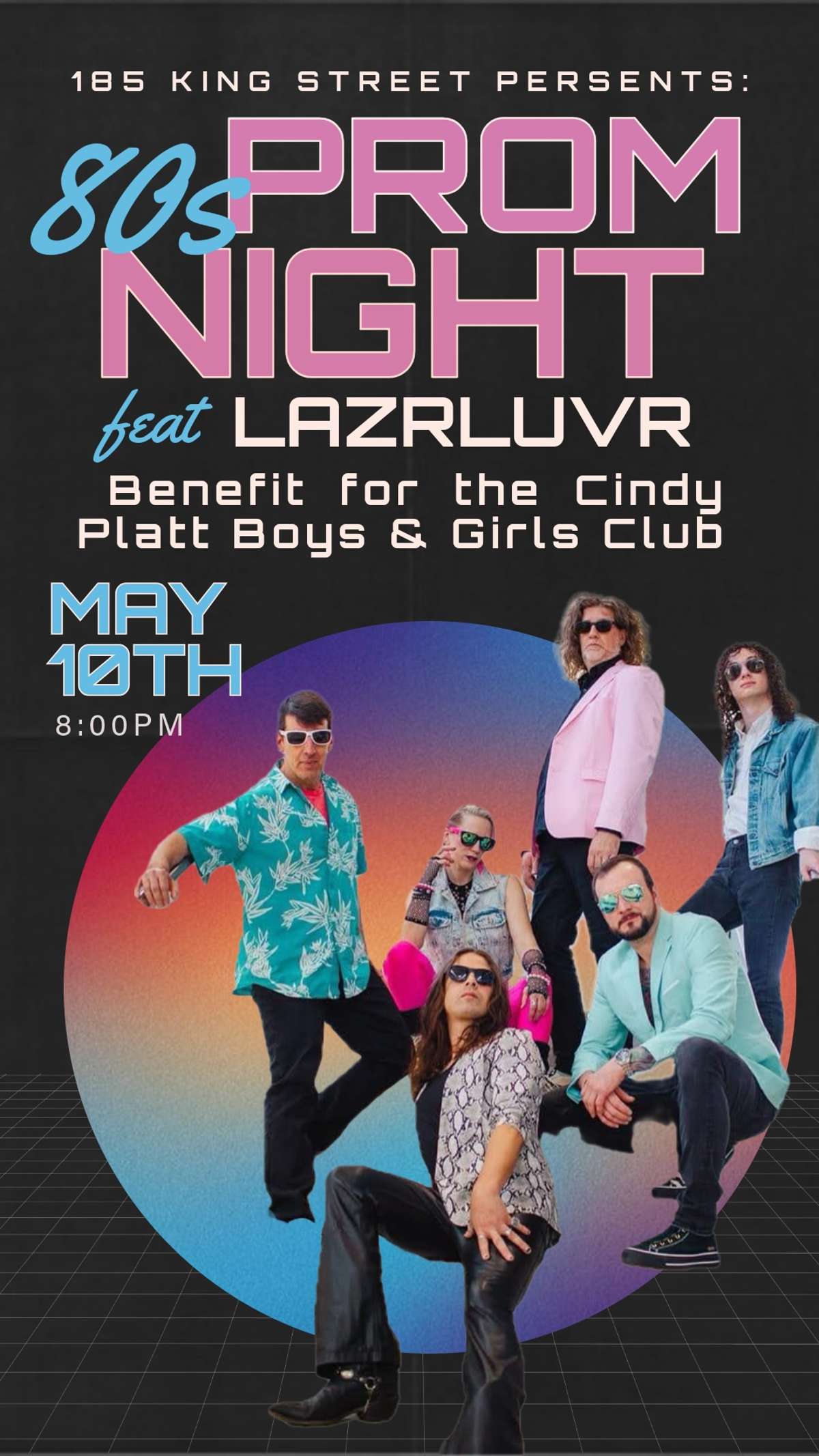 Get ready to step back in time for a Tacky Prom night like no other! Join us for an unforgettable evening filled with neon, big hair, and all the '80s vibes you can handle. Featuring the beloved '80s cover band LazrLuvr, this event will have you dancing to all your favorite hits from the era.