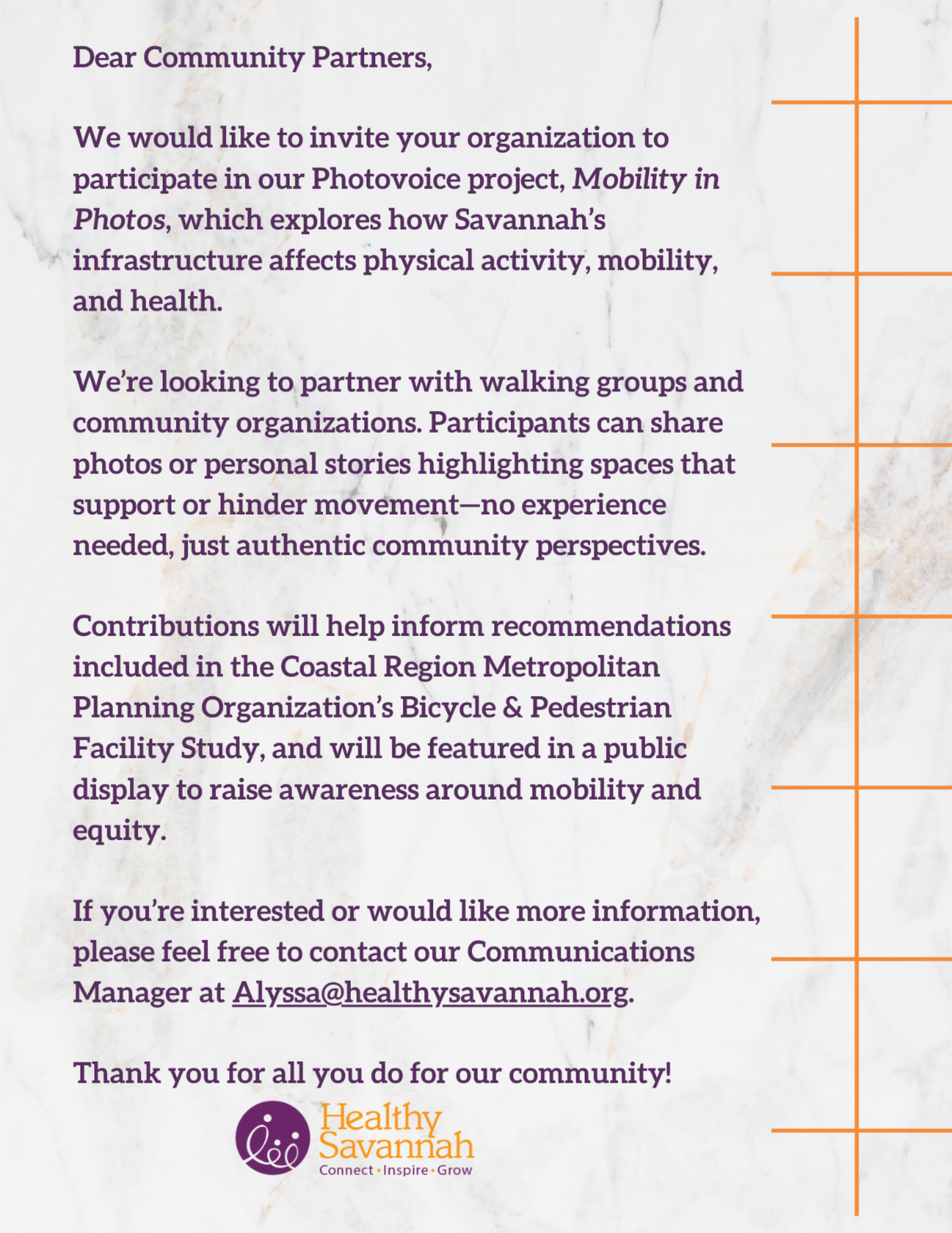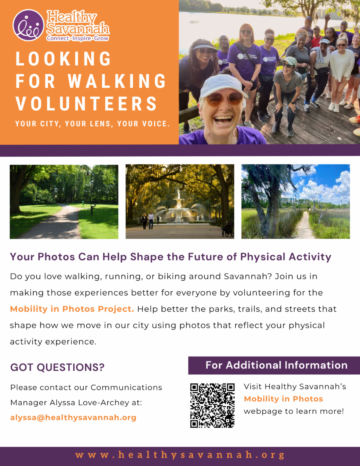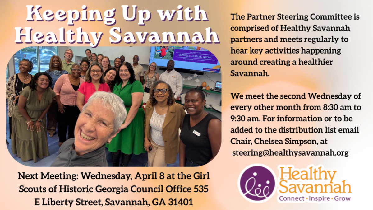 At Healthy Savannah, we encourage our community to find simple, enjoyable ways to move more each day. Join us for our weekly healthy walks, explore local parks, or invite a friend or family member to stay active with you. By making movement a part of your daily routine, you’re taking an important step toward a healthier, stronger you!