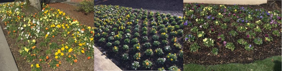 Most pansy plantings are doing quite well. Some of the credit of this is due to the mostly mild weather this winter, but our ongoing winter maintenance program helps ensure regardless of whether that your pansies are healthy through the winter and into the spring. Pansies are starting to grow again, and the bloom will be spectacular over the next 2 months before it is time to change out to summer flowers.