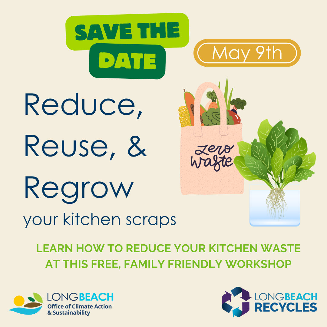 Learn how to reduce your kitchen waste at this free, family-friendly workshop hosted by the Office of Climate Action & Sustainability and LB Recycles. Save the date for May 9th from 3:30 - 5:00 pm, more details to be announced.