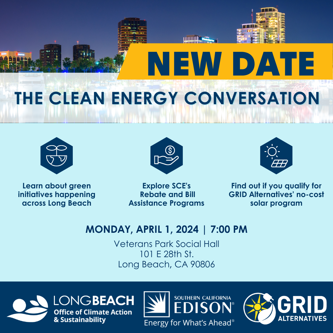 We welcome residents to join a public meeting on energy conservation hosted by the Wrigley Association on April 1st with special guests from Southern California Edison (SCE) and GRID Alternatives. We will be discussing what is already being done in the City of Long Beach as well as what actions residents can take to contribute to a cleaner and healthier planet while also lowering their energy bills.