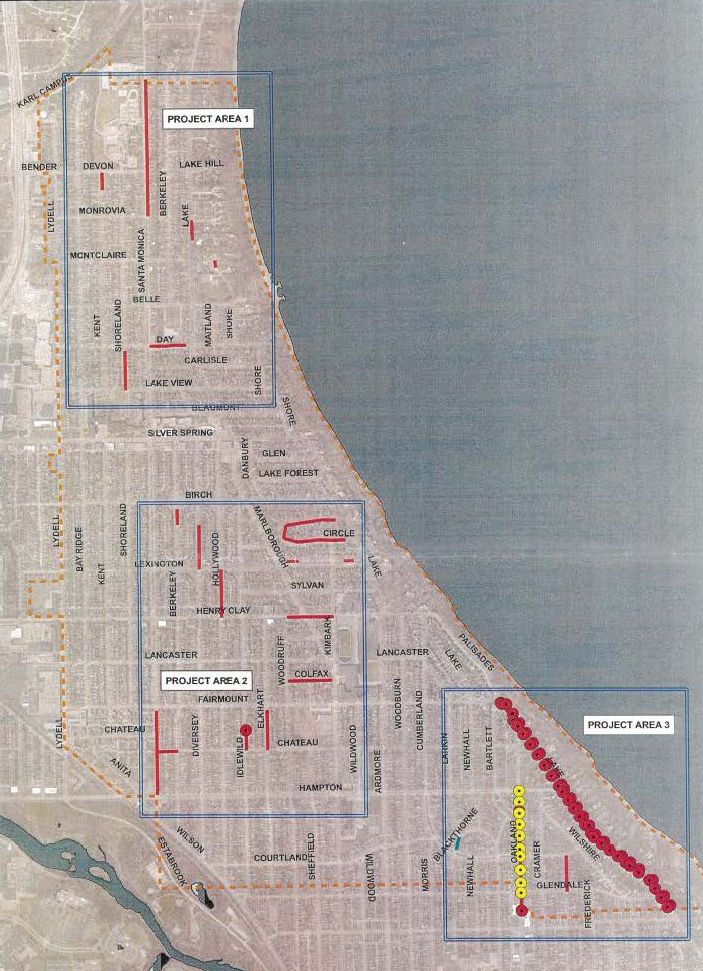 Schedule: The project will be completed in three (3) phases. The first phase will consist of high-pressure cleaning and televising of the sanitary sewer mains. This work is anticipated to begin early January 2022, weather permitting, and will continue for approximately 4-6 weeks. The second phase is the installation of the plastic liner in the sanitary sewer mains. The second phase is scheduled to begin in late January and will be completed by April. The final phase, that includes manhole rehabilitation, is scheduled to occur during the months of April-May. Click here to view larger maps of the three phases (pages 2-5).