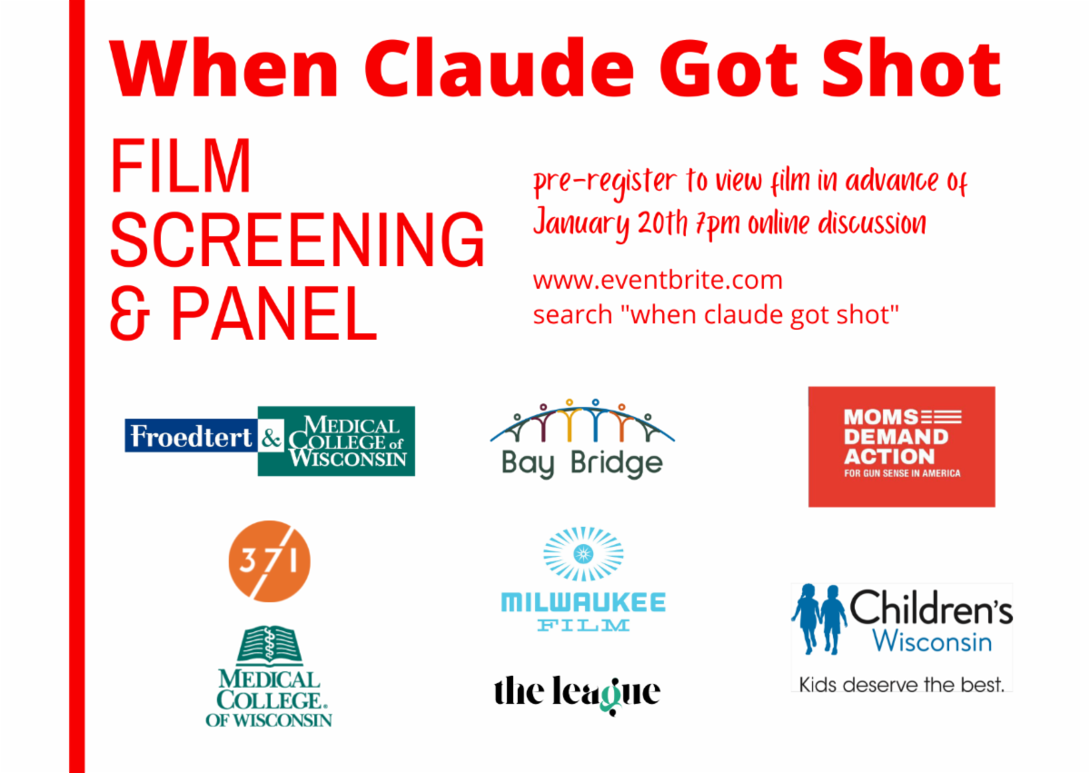 Please plan on attending our online film panel event on Thursday, January 20, at 7:00 p.m. Representatives from Children's Wisconsin, Medical College of Wisconsin, Froedert, and Moms Demand Action will join featured film subjects Claude Motley and Victoria Adams for a frank & authentic (virtual) discussion of gun violence & healing and why it matters to Whitefish Bay, Milwaukee, and our greater community. Additionally, a scene from the film is shot here in Whitefish Bay.