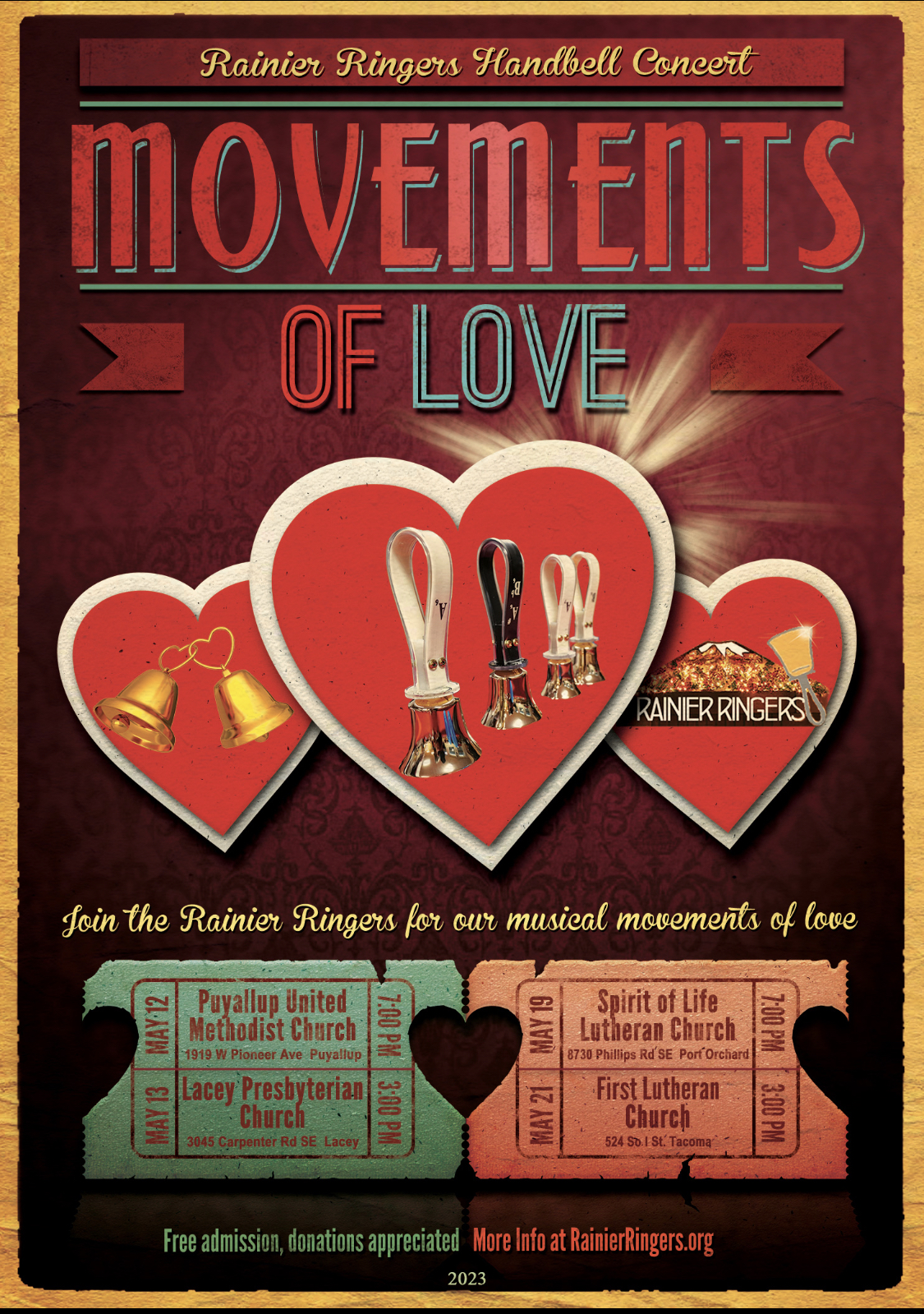This spring, love is in the air! Join the Rainier Ringers for our spring concert series: Movements of Love! Featuring the musical movements - Dreaming of You, Seeking Perfection, and Believe.