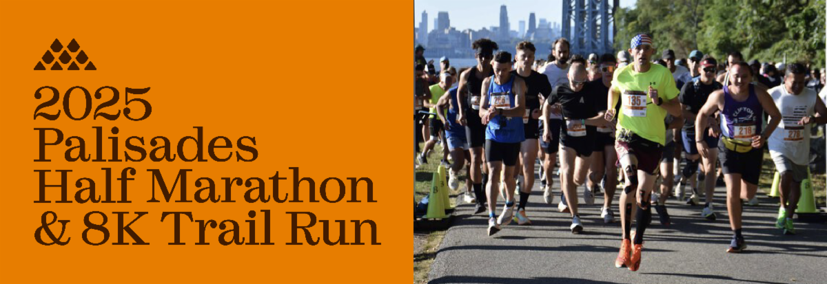 Don't miss out on early registration pricing for the 2025 Palisades Half and 8K trail run set for Sunday, September 21st! Join us at Ross Dock Picnic Area in the NJ Palisades Interstate Park for an epic 13.1 mile paved run over 1600 ft of elevation along the Palisades ridge, or an adventure through the cliffs on a rugged 8 kilometer mixed-terrain route!