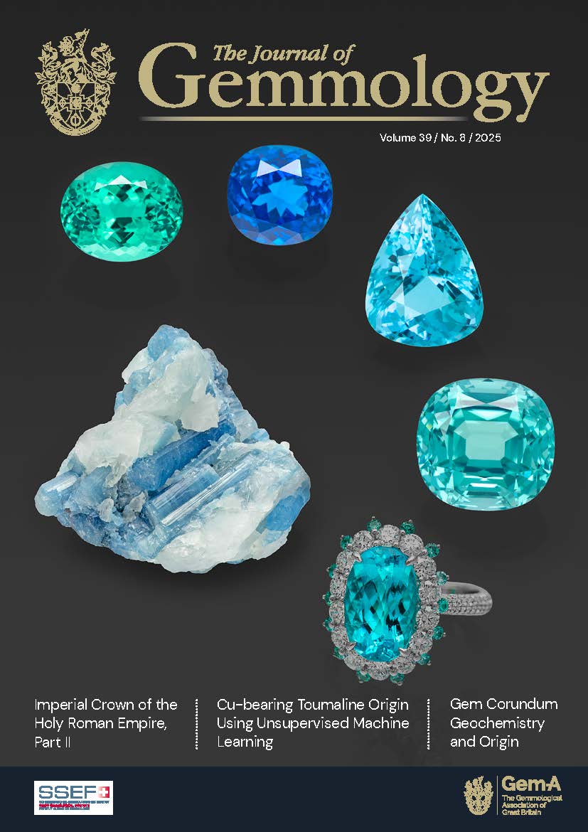 Editor-in-chief Brendan Laurs FGA, who was recently announced as the recipient of the 2025 Antonio C. Bonanno Award for Excellence in Gemology from the Accredited Gemologists Association (AGA), notes that “This issue closes the year with an important application of machine learning to the origin determination of gem materials, rounding out a trend we’ve been seeing regarding the increased use of artificial intelligence for addressing complex gemmological challenges. The Journal continues to be a valuable resource for keeping track of exciting new developments in the science of gemmology.”