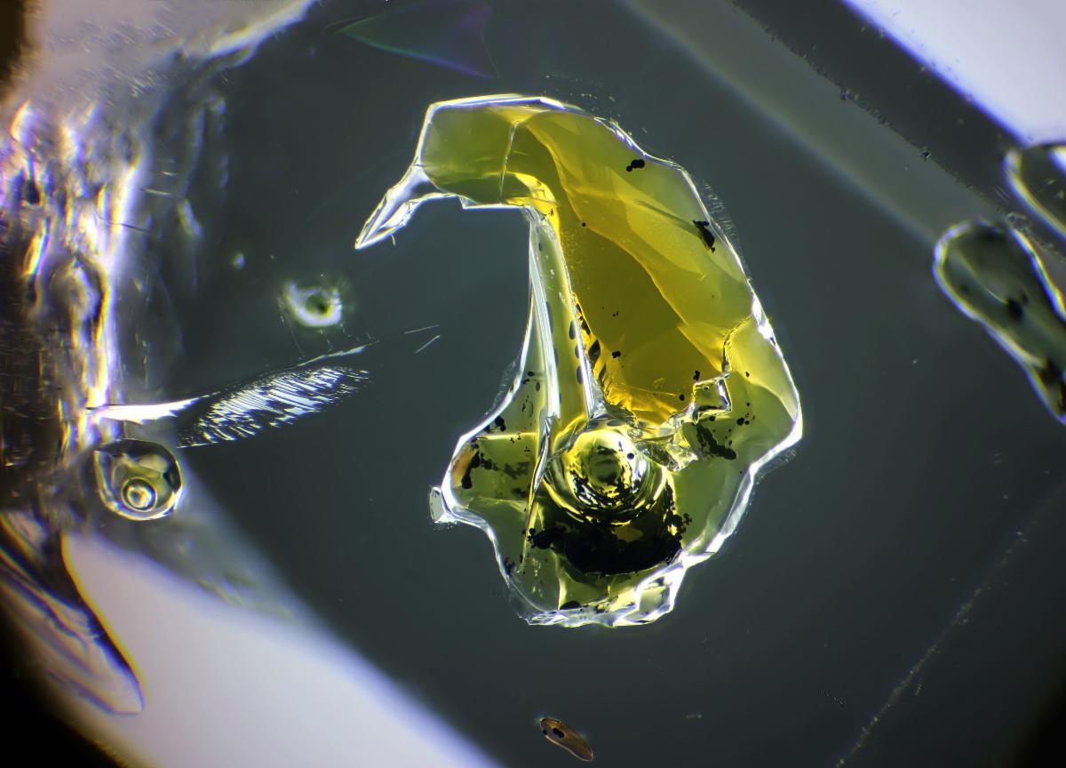 Rough diamond crystal. Transmitted and reflected light. Image by Gary Roskin. Diamond provided by AMGAD. | | | | |