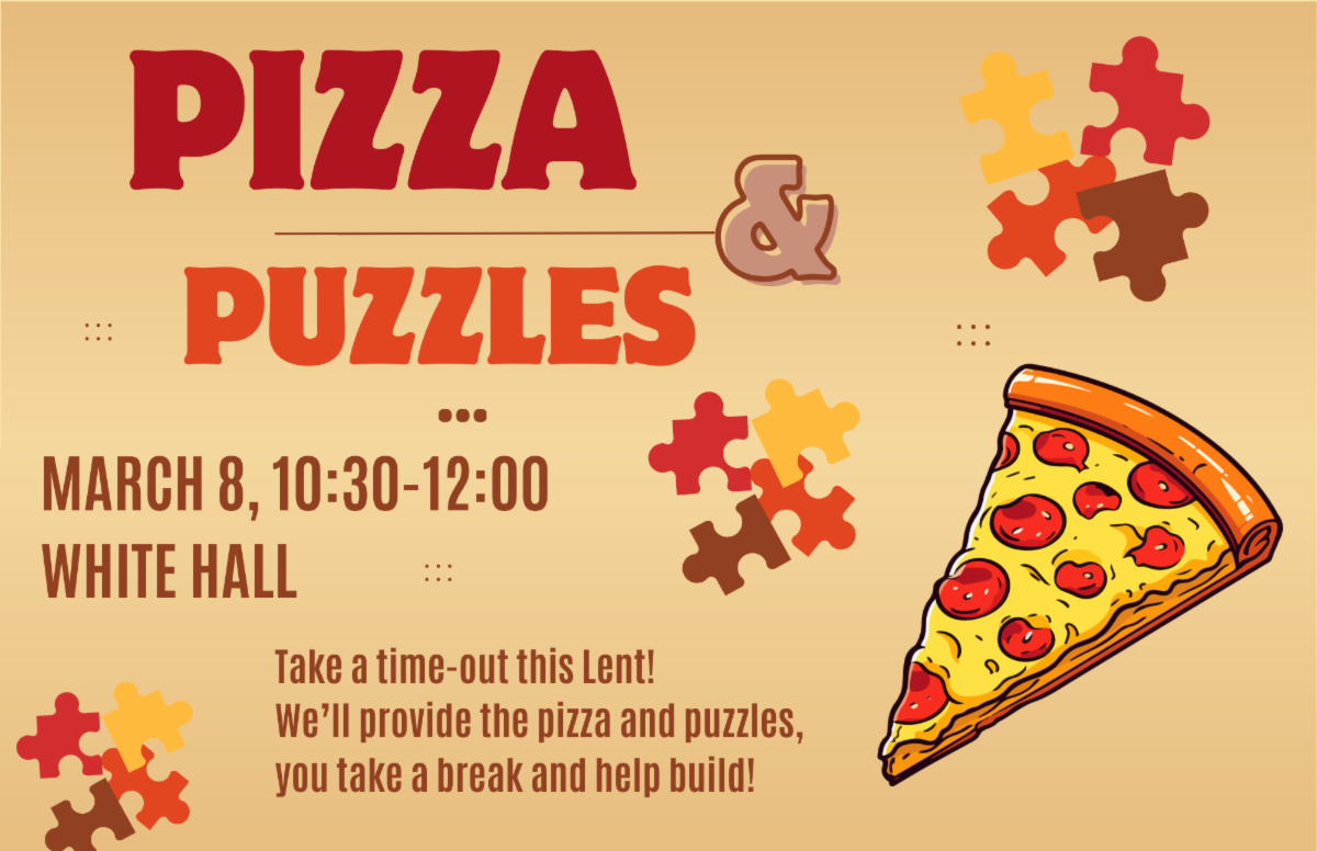 Take a Lenten break for Pizza and Puzzles! Thanks to Rose Wilson for hosting this event for everyone-grab a slice of pizza and take some time out to build a puzzle. No RSVP needed; but if you have a 300 piece or smaller puzzle-or one that's very unique!-to contribute, please tell Rose: rwilsonn@aol.com