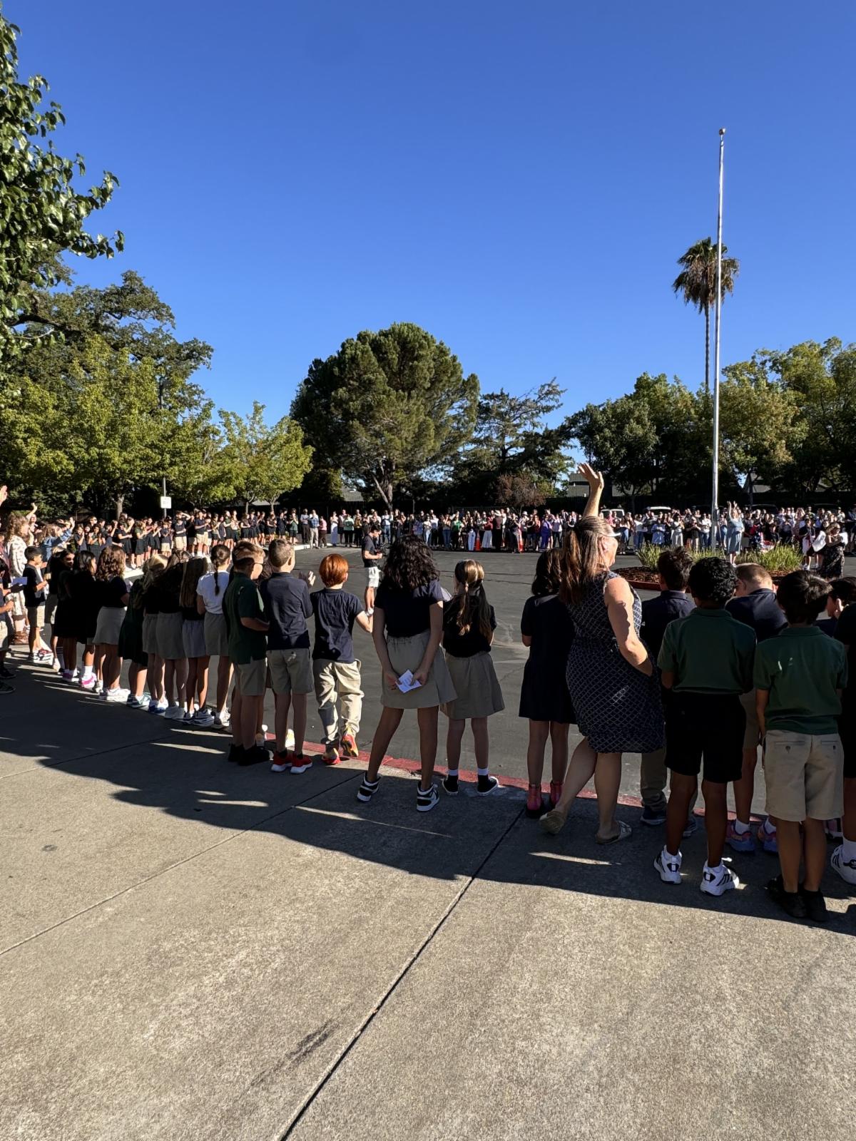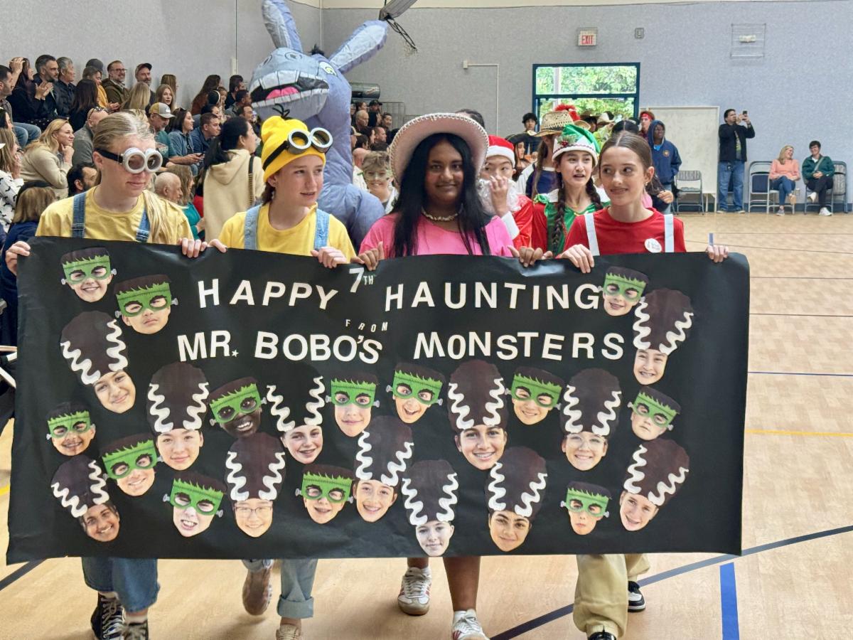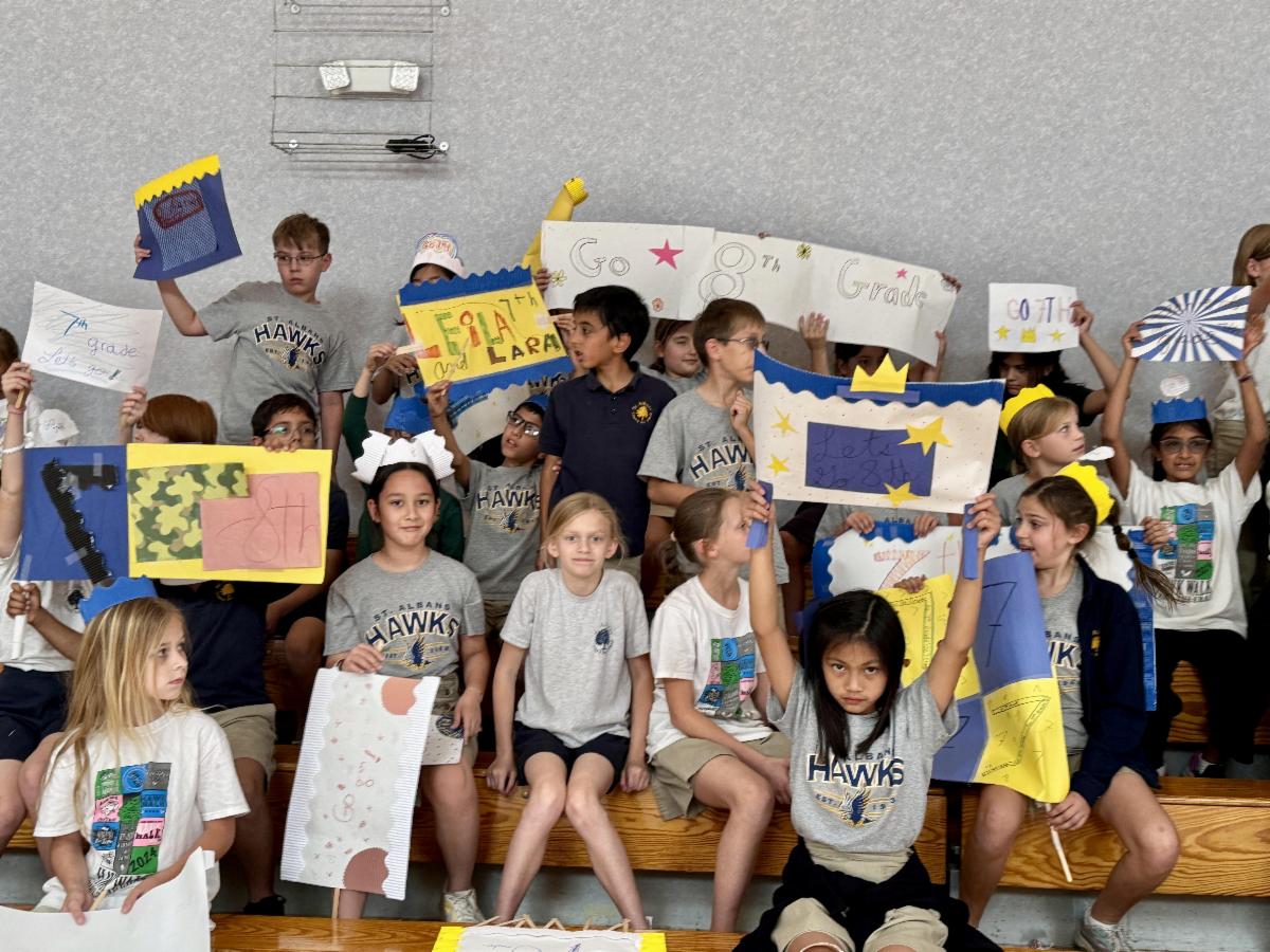 Excitement filled the air as students from grades one through eight gathered in Taber Center for an all-school rally designed to celebrate unity and build school spirit. The event kicked off with a rousing performance by the advanced band. Their lively tunes echoed through the gym, setting an energetic tone as students filed in with smiles and laughter.