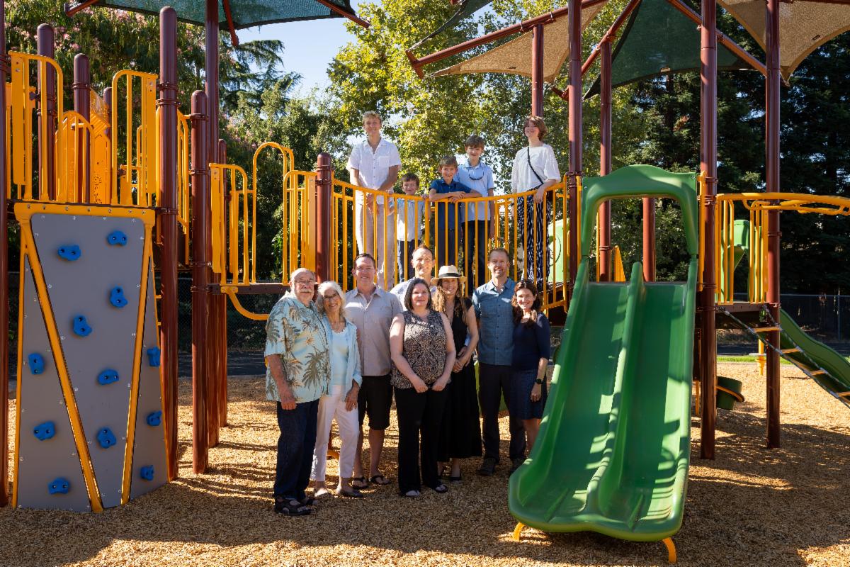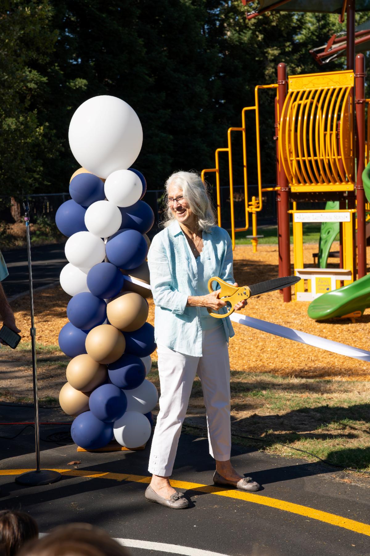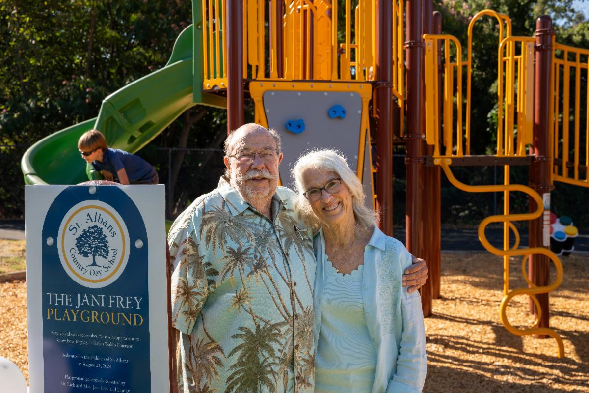 Dr. Frey wanted to honor his wife, Mrs. Frey, with a gift to St. Albans that would help commemorate the 16 years that she was our Pre-kindergarten teacher. With help from their children, Doug ('87), Greg ('88), and John ('95), Dr. Frey stealthily brought Mrs. Frey to St. Albans under the guise of showing John’s children where their father went to school. Little did she know, the real reason for their impromptu visit was the unveiling of the Jani Frey Lower Grade Playground.
