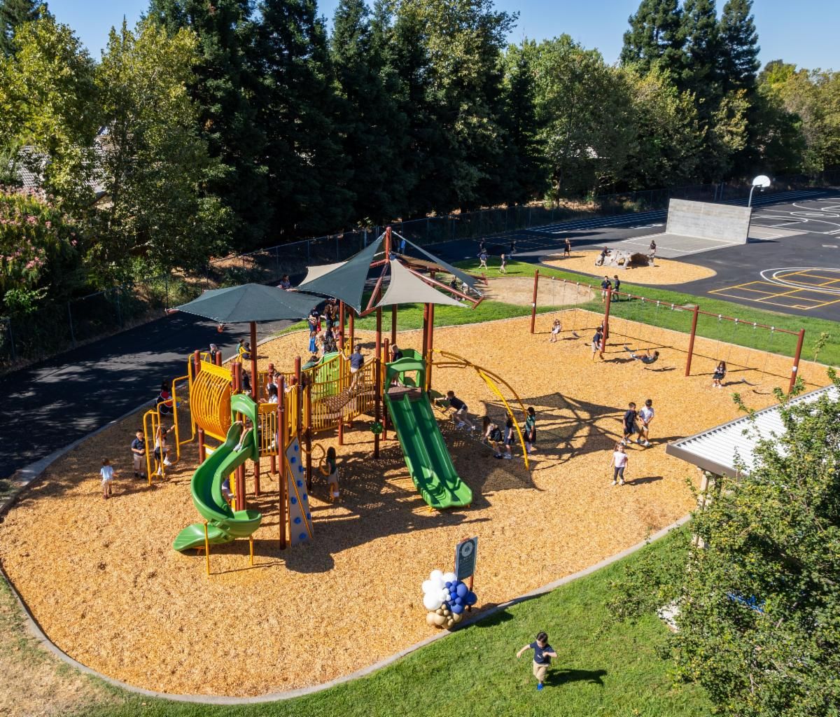 Adventure awaits at the new playground, featuring four thrilling slides, a clatter bridge, and endless climbing challenges for students to explore! The playground was made complete with six new swings, a stand-n-spin, and five concerto conga drums. The Jani Frey Lower Grade Playground offers endless opportunities for imaginative play and physical activity. | |