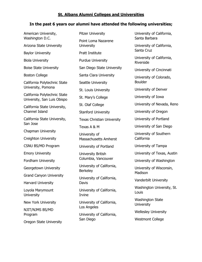 This report does not include gifts to the St. Albans Parent Association. SAPA donations, though equally important and valued, are typically acknowledged via parent communications, event promotion, or in exchange for goods or services.