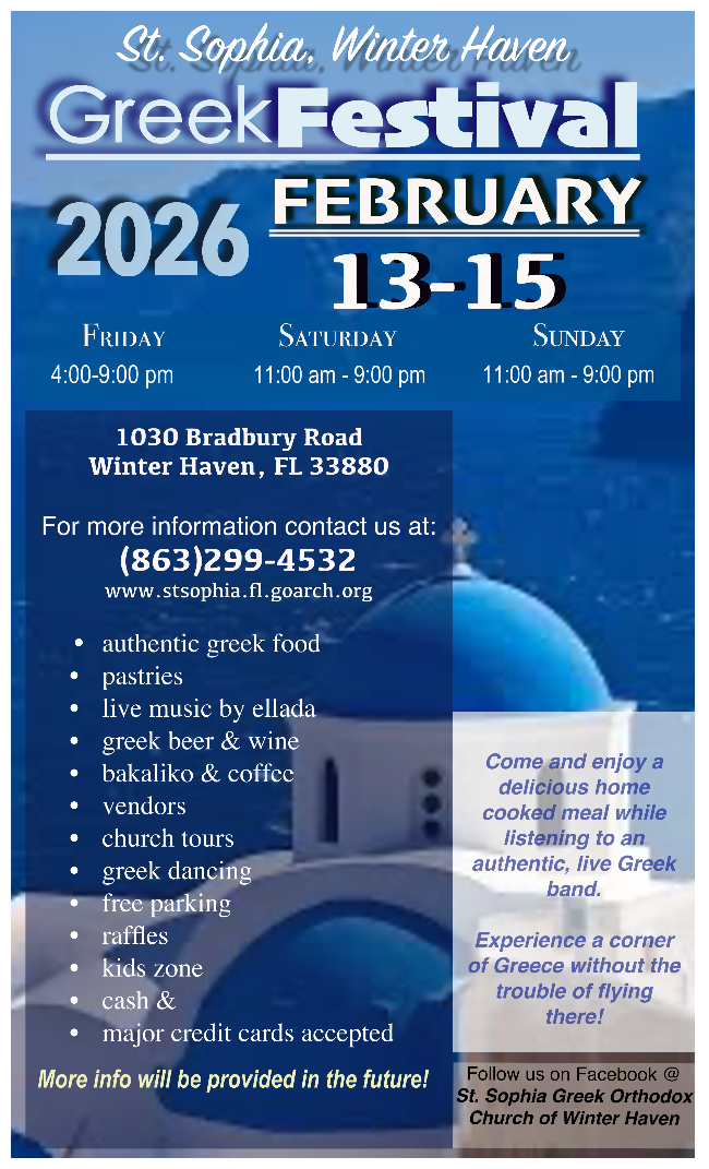 St. Sophia Greek Orthodox Church in Winter Haven, Florida, sells the finest Greek food and pastries.