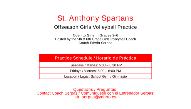 Don’t forget to do your homework, go to church on Sunday, and remember who we are, we are St. Anthony Spartans.